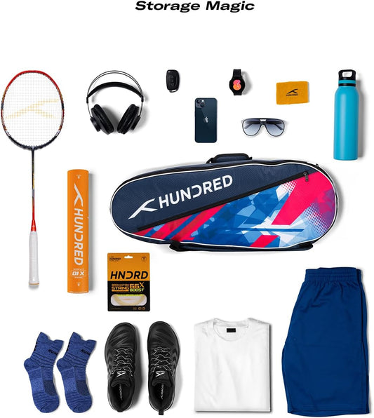 HUNDRED Atomic Air 77 Carbonfaser-Badmintonschläger mit Besaitung und vollständiger Schlägerhülle Für fortgeschrittene Spieler