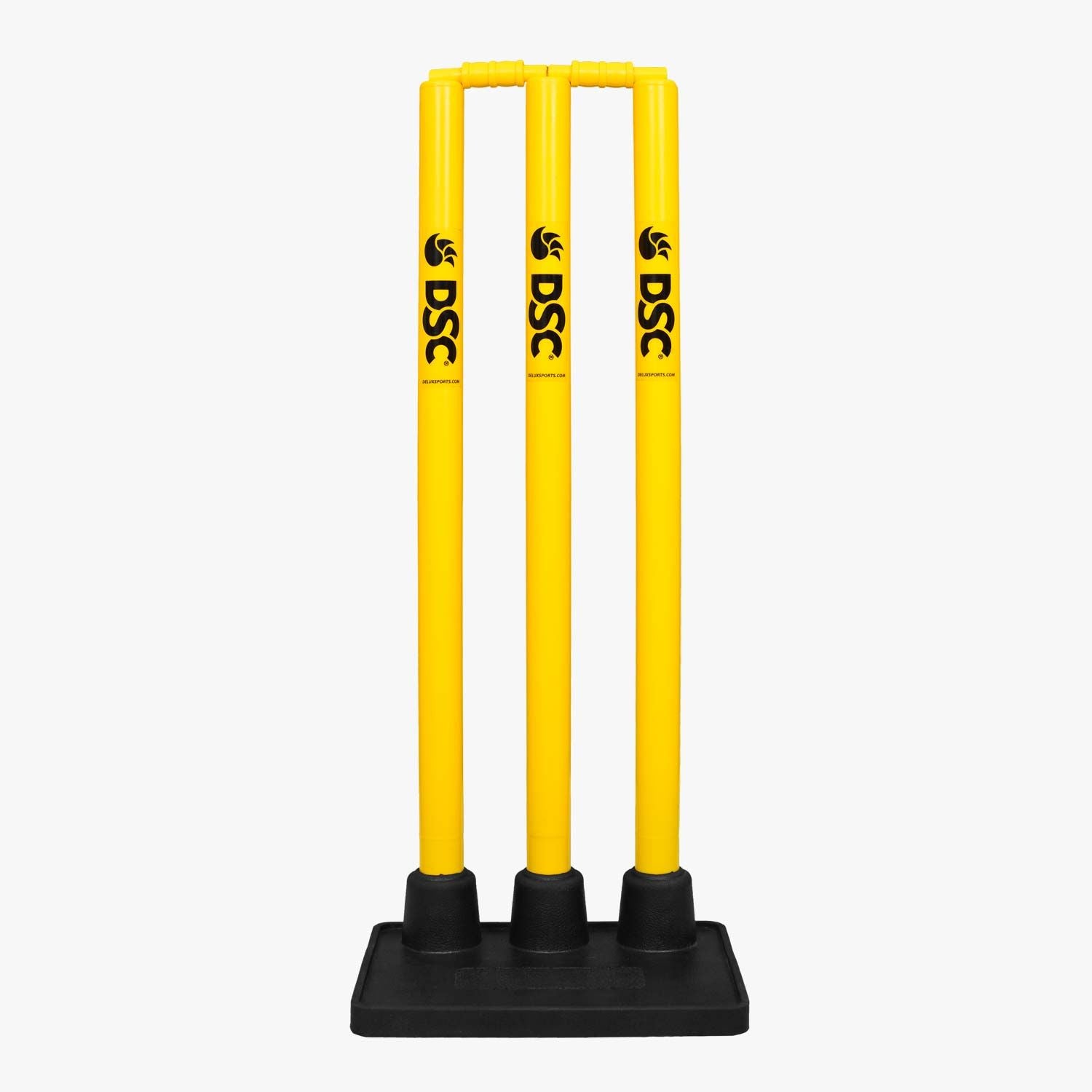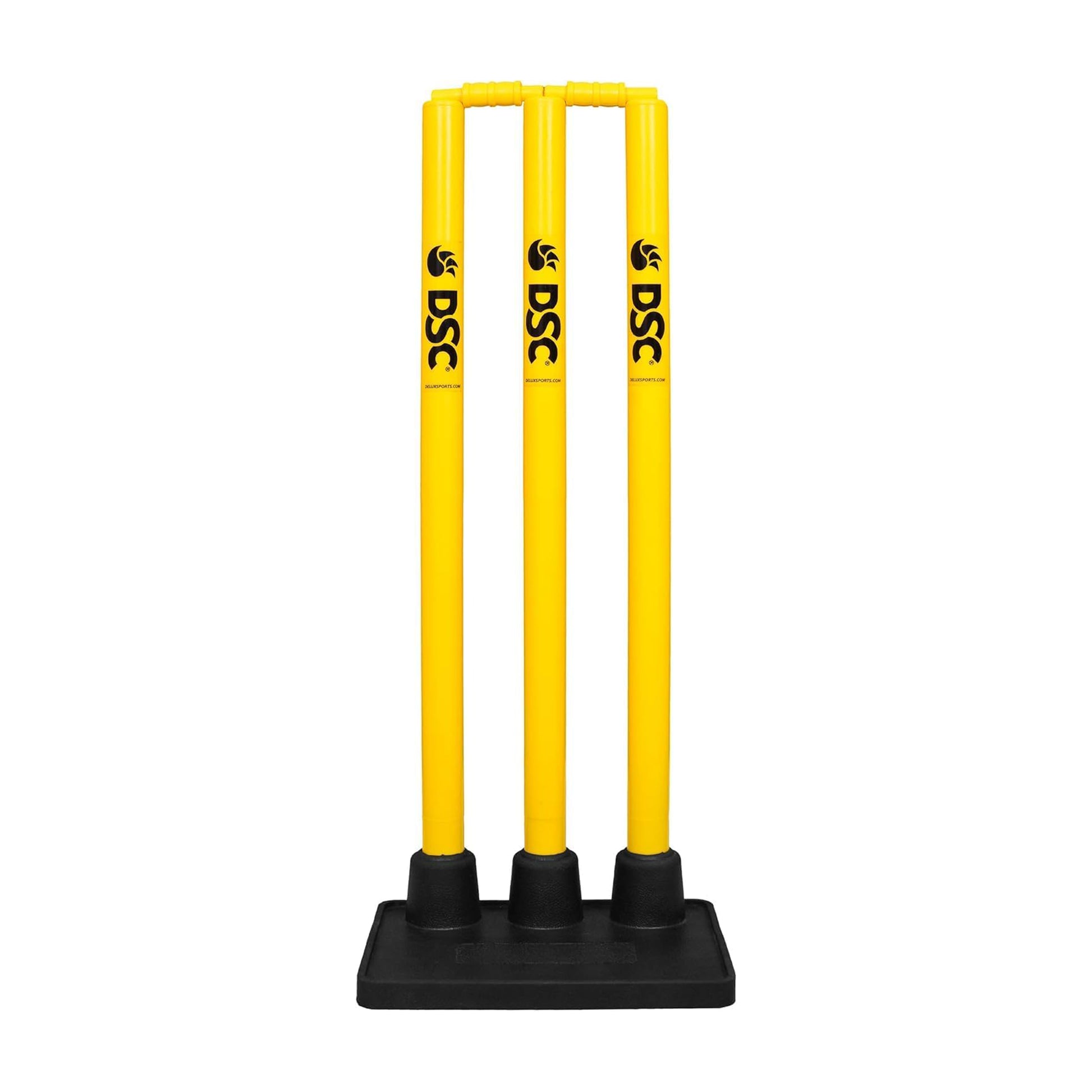 DSC PLASTIC STUMPS SET WITH RUBBER BASE (3 Stumps, 2 Bails ; 1 Base) CRICKET STUMPS SET - MENS-2024