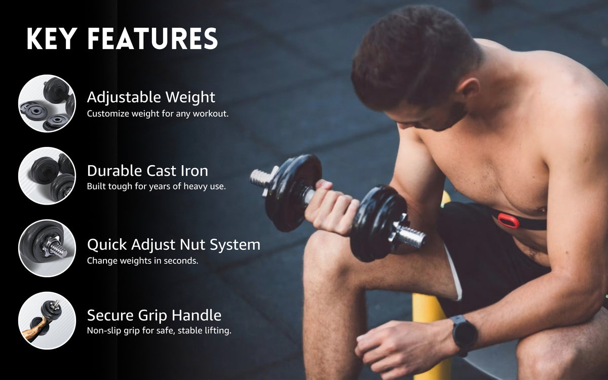 DURABLE CAST IRON CONSTRUCTION: Made from high-quality cast iron, the dumbbells are designed to withstand heavy use and ensure a long life for your workout.