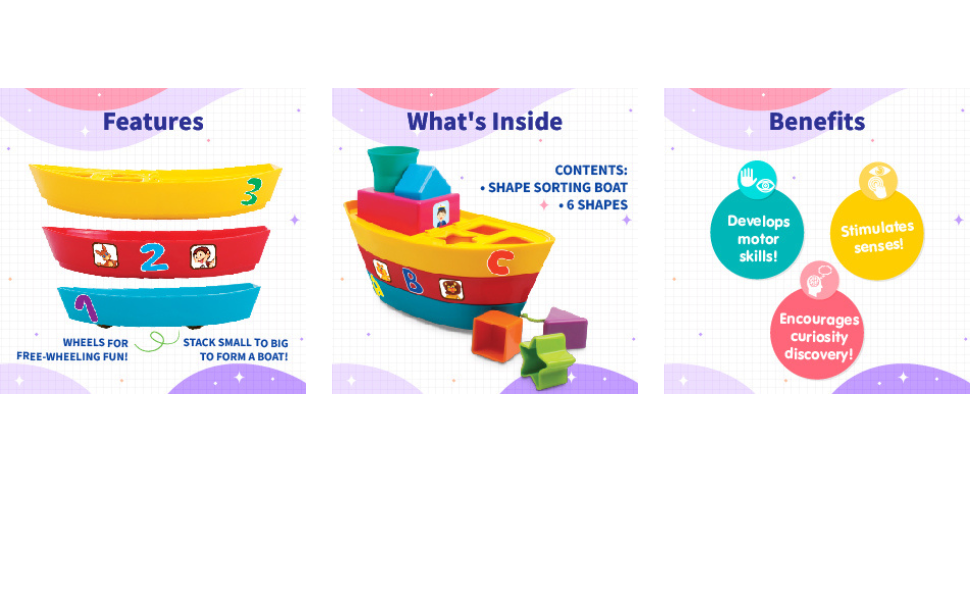 Giggles Funskool Stack A Boat, Pull Along, Nesting & Stackable Toy for Kids, Encourages Learning & Development, Fun Activity for Babies, Gift Set for Kid, Age 18+ Months