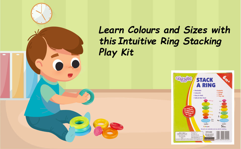 Giggles Funskool Stack A Ring, Multicolour Stacking Toy with 5 Colourful Rings, Helps to Grasp, Shake and Stack, 12 Months & Above, Infant and Preschool Toys