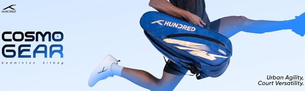 Hundred Cosmogear Badminton Kit Bag | Double zipper | Front zippered pocket | Material: Polyester | Padded back straps | Easy-to-carry handle (Teal Blue)