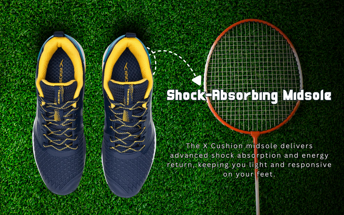 - The X Cushion midsole provides advanced shock absorption and energy return, so you can move lightly and responsively.