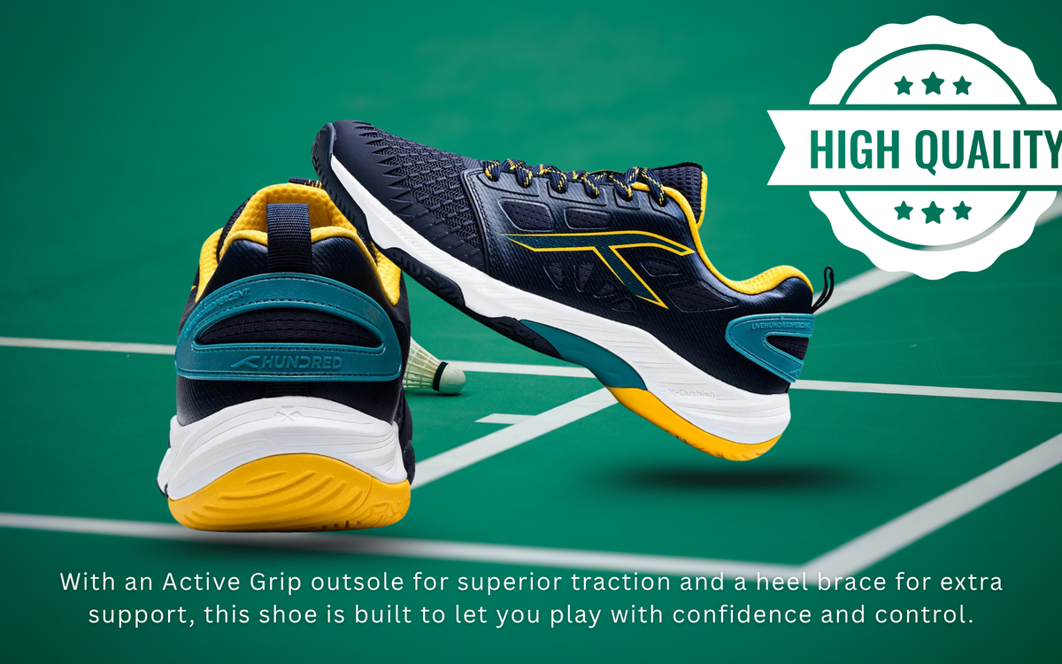 Hundred HYPERCOURT Badminton Shoe (Navy/Green/Yellow)