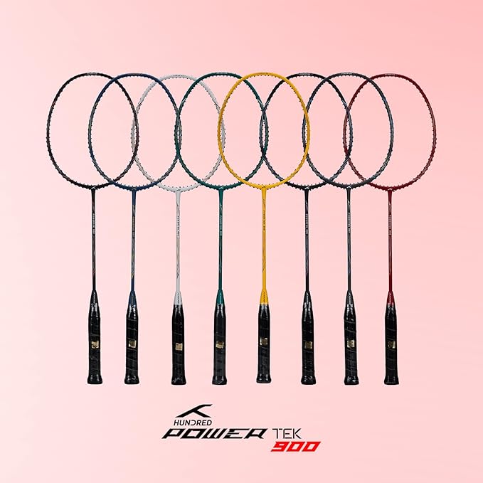 HUNDRED POWERTEK 900 Badminton Racket with Cover (BLACK/RED, Size: Standard, Grip Size: 3 1/4 inches) | Powertek 900 Series | Stringing | Material: Full Graphite | For advanced players | Weight: 84 grams | Maximum string tension - 26lbs