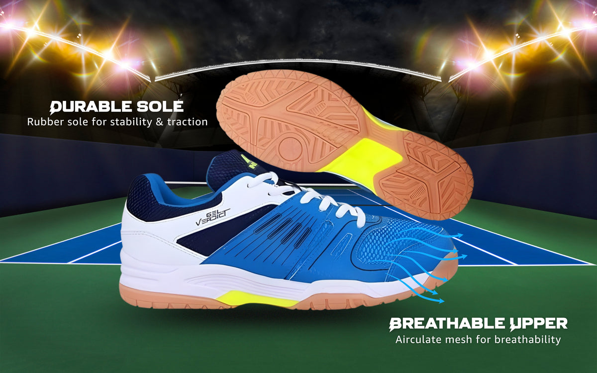 - The abrasion-resistant rubber outsole provides grip and stability while playing.