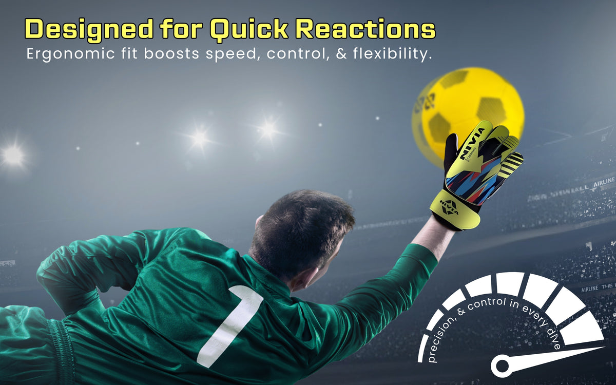 - Die Allwetter-Torwarthandschuhe haben ein ergonomisches Design und bieten extremen Komfort und Leistung