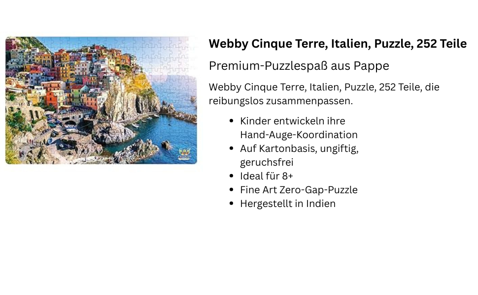 Webby Cinque Terre Italy Jigsaw Puzzle | 252 Pieces | 43 x 29 cm Completed Size | Challenging Puzzle for Kids & Family | Enhances Focus, Motor Skills & Logical Thinking | Gift for Ages 6+