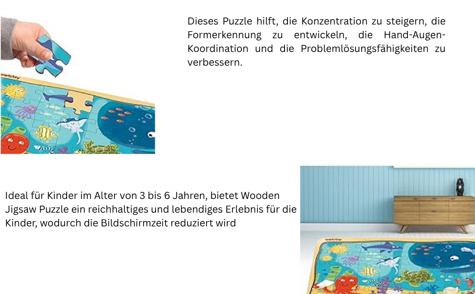 Webby Kids Underwater Animals Jigsaw Puzzle | 40 Pieces | Educational Wooden Puzzle for 3-6 Years | Enhances Concentration & Problem Solving Skills | Includes Wooden Tray for Easy Storage
