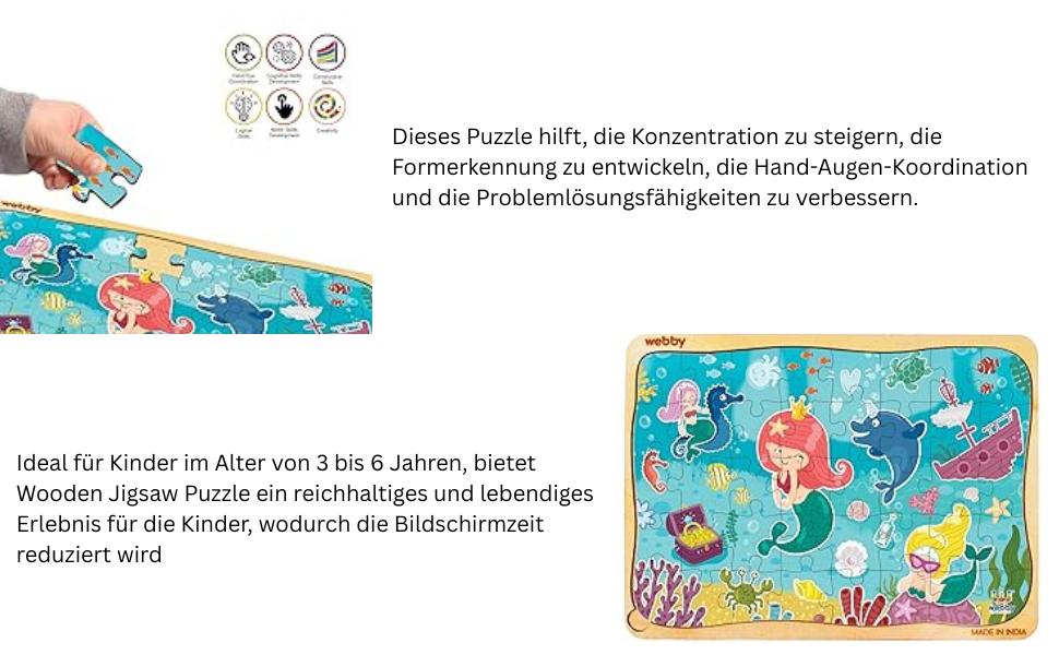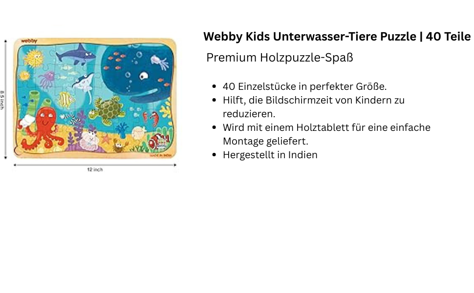 Webby Kids Underwater Animals Jigsaw Puzzle | 40 Pieces | Educational Wooden Puzzle for 3-6 Years | Enhances Concentration & Problem Solving Skills | Includes Wooden Tray for Easy Storage