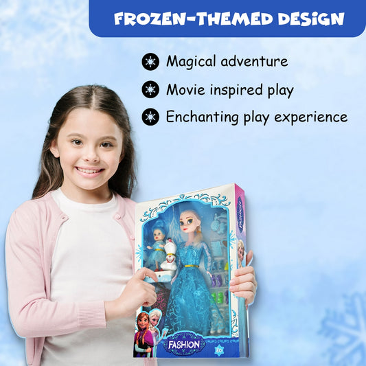 • FUNFY 11" Ice Princess Doll Set | Includes two additional small dolls | Blue | Material: Plastic | Numerous accessories, including dresses, shoes, comb, and mirror for extended play | for girls