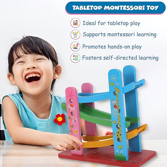 FUNFY Wooden Race Track Game with 3 Mini Cars