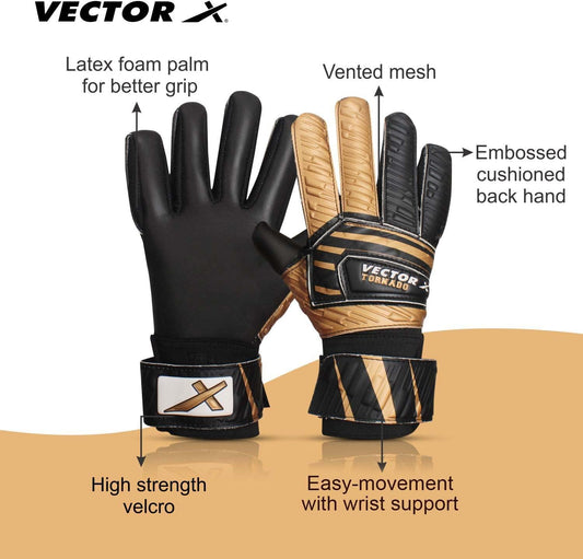 Vector X Gripflex Goalkeeper Gloves for Kids, Youth, Goalkeeper, Field Player Gloves, Embossed, Non-Slip Latex Palm, Soft Polyurethane Back, White, Black, Orange, Size 5