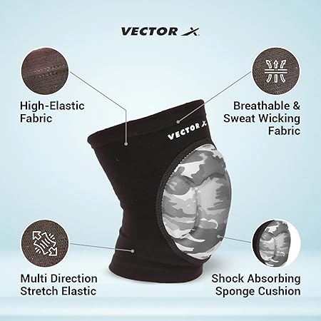 Vector X Camo One Piece Knee Brace for Sports Pain Relief Knee Compression Support Exercise Running Cycling Knee Pads Knee Support for Women and Men (Black-Gray)