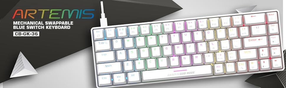 Cosmic Byte CB-GK-36 Artemis 68Key Per Key RGB Kabelgebundenes mechanisches Tastatur mit austauschbaren blauen Outemu-Schaltern und Software (Weiß)