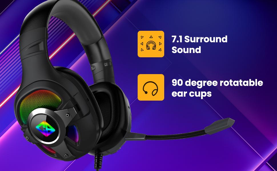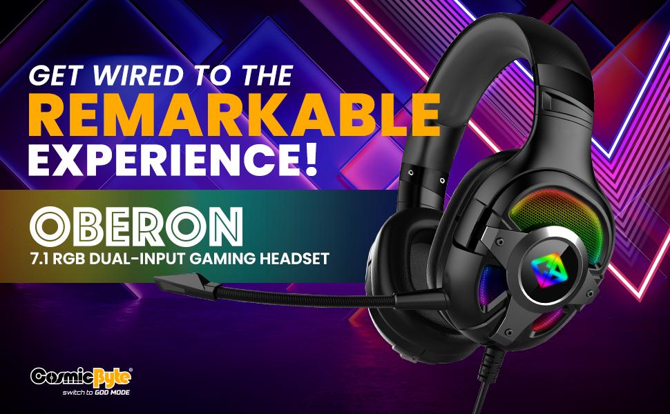 Cosmic Byte Oberon 7.1 RGB Gaming-Headset mit zwei Eingängen – USB und 3,5-mm-Klinkenstecker, abnehmbarem Mikrofon und um 90° drehbaren Ohrmuscheln (schwarz)