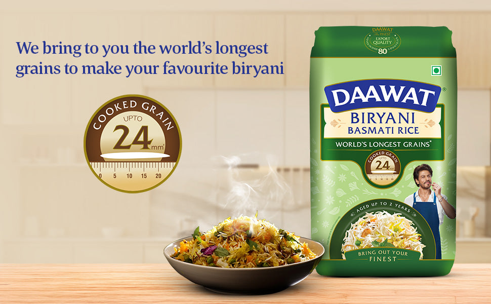- Dehnt sich beim Kochen auf bis zu 24 mm aus: Daawat Biryani Basmati Körner sind bekannt für ihre Dehnung beim Kochen und sorgen jedes Mal für ein optisch ansprechendes und köstliches Biryani.