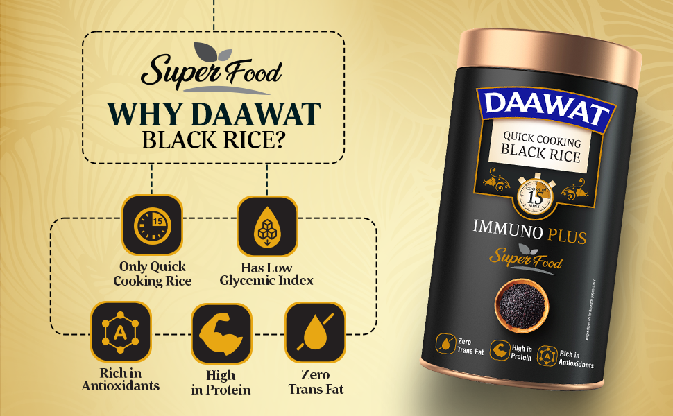 Daawat Black Rice Immuno Plus 1 kg Packung – Superfood mit hohem Proteingehalt, reich an Antioxidantien und Mineralien und fettarm – Vollkorn
