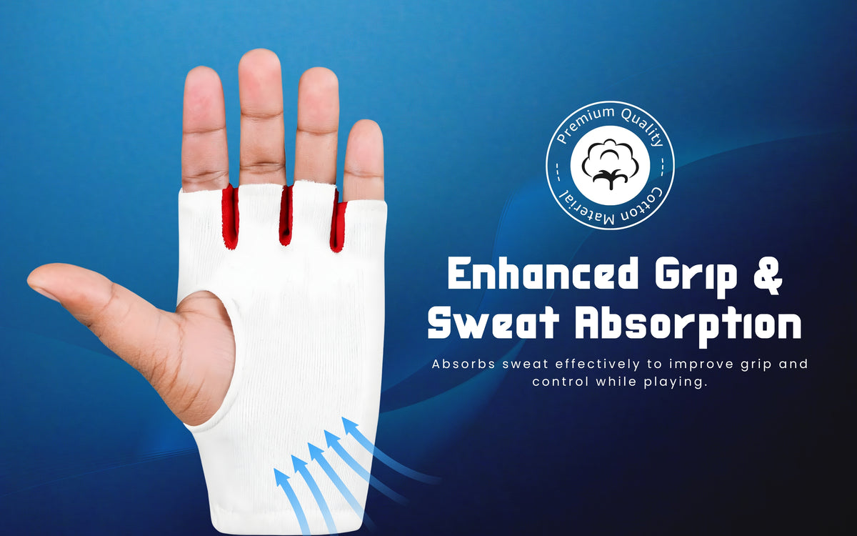 - Hochwertiger Baumwoll-Innenhandschuh für Schlaghandschuhe | Hochwertiges Lycra auf dem Handrücken | Schweißabsorbierend für besseren Grip | Fingerloser Handschuh