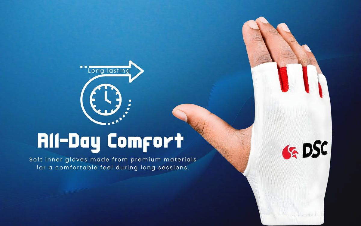 DSC Atmos1 Fingerlose Cricket-Schlaghandschuhe mit Lycra-Rücken | Farbe: Weiß | Größe: Herren | Material: Baumwolle | mit PVC-Bündchen | Hervorragender Gummigriff | Rutschfest | Atmungsaktiv