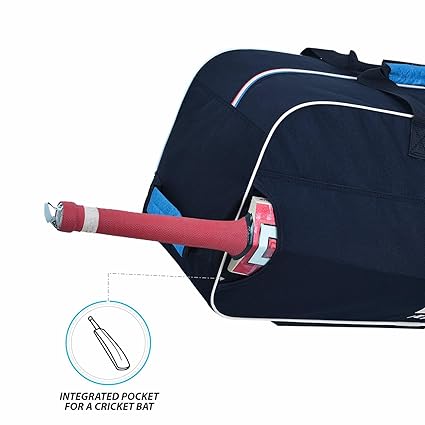 - Integrierte Schlägertasche: Verfügt über eine praktische integrierte Schlägertasche oben, die eine einfache und sichere Aufbewahrung Ihres Cricketschlägers ermöglicht.