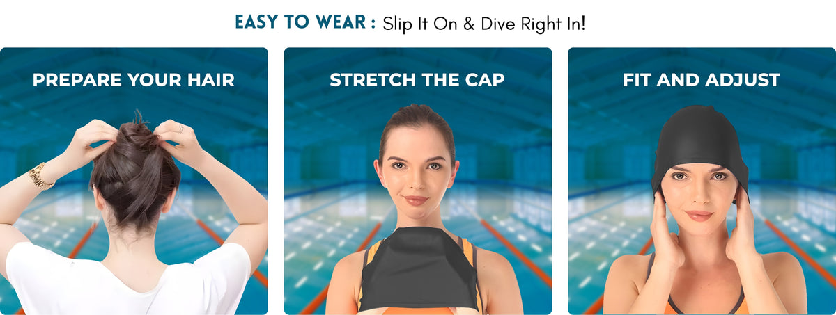 - Einfaches Tragen für Mädchen: Mit wenigen Schritten ist diese Badekappe für Mädchen leicht zu tragen – einfach die Haare in Position falten, die Kappe entsprechend der Kopfgröße dehnen, die Kappe auf den Kopf setzen und für Ihren Komfort anpassen.
