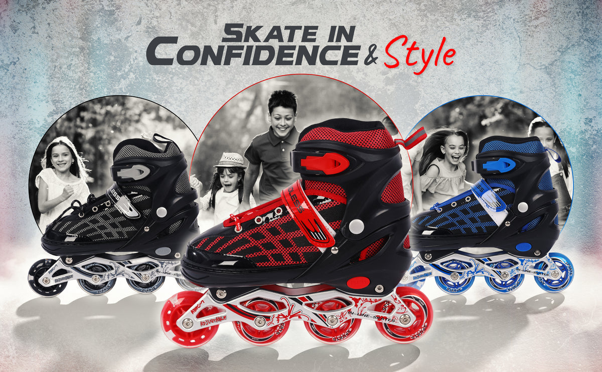DURABLE FRAME AND ADJUSTABLE 3 SIZE: Hergestellt mit einem Aluminium-Rahmen für Stärke und Stabilität während des Gebrauchs. Die Rollschuhe können auf drei verschiedene Größen mit Druckknopf eingestellt werden, so dass sie für verschiedene Fußlängen geeignet sind.