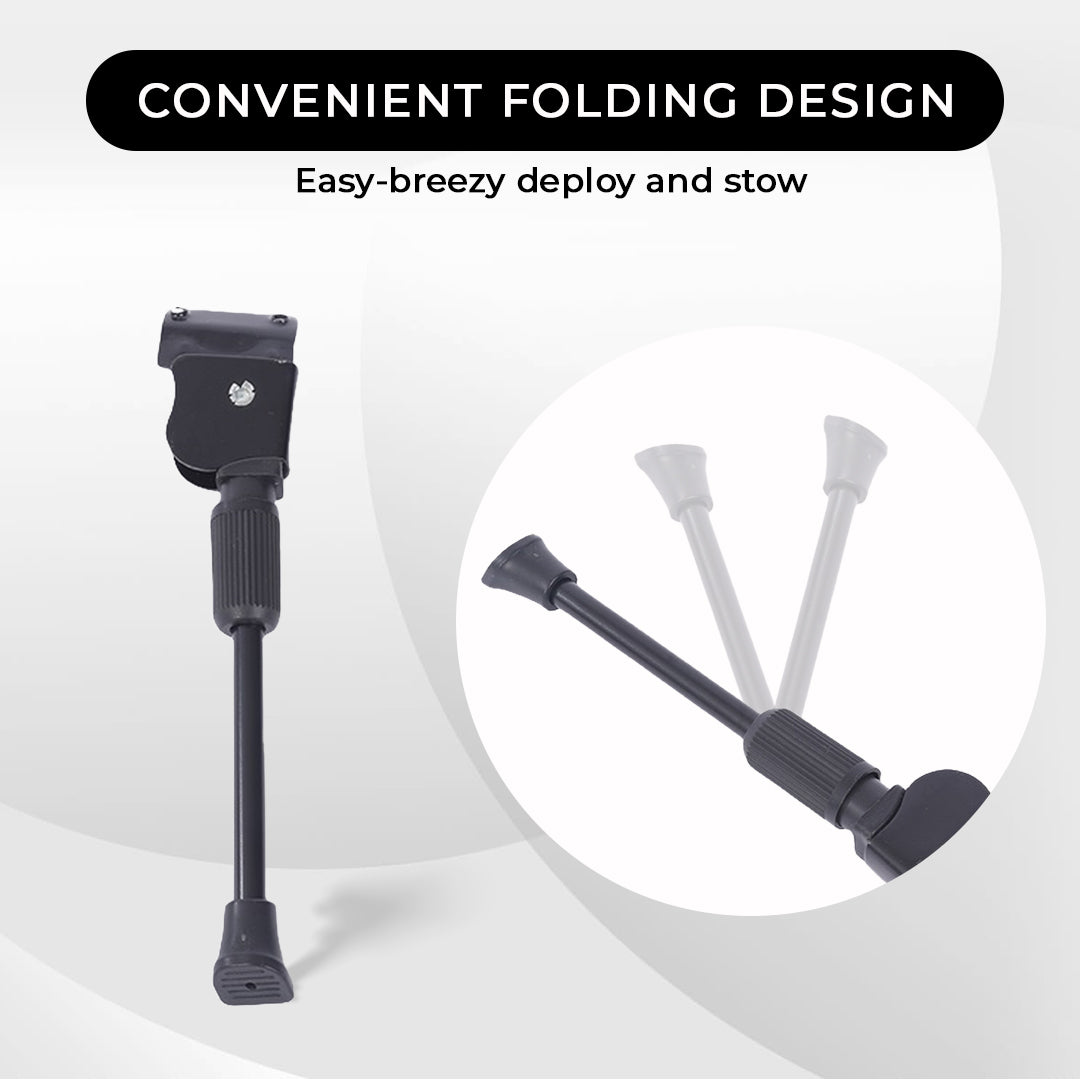 - SICHERER KLAPPMEchanismus: Um gefährliche Unfälle zu vermeiden, verfügt der Ständer über einen soliden Klappmechanismus. Dieser sorgt für zuverlässige Stabilität, wenn das Fahrrad abgestellt wird. Die Gummikappe an der Unterseite des Ständers sorgt für zusätzlichen Halt und damit für noch mehr Sicherheit.
