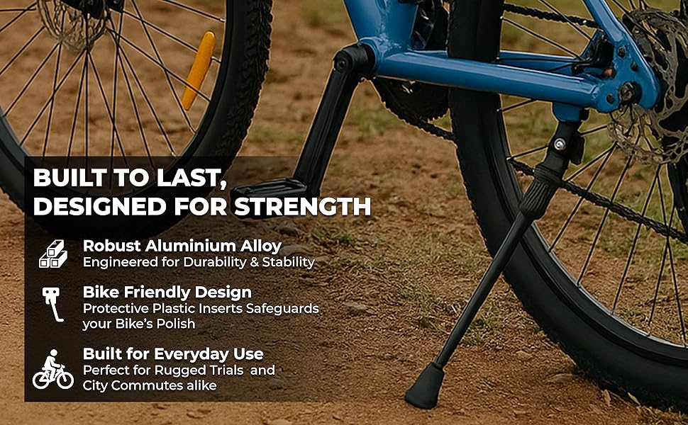 - SICHERER KLAPPMEHANISMUS Um gefährliche Unfälle zu vermeiden, verfügt der Ständer über einen soliden Klappmechanismus. Dieser sorgt für zuverlässige Stabilität beim Abstellen des Fahrrads. Die Gummifüße an der Unterseite des Ständers bieten zusätzliche Sicherheit durch festen Halt.
