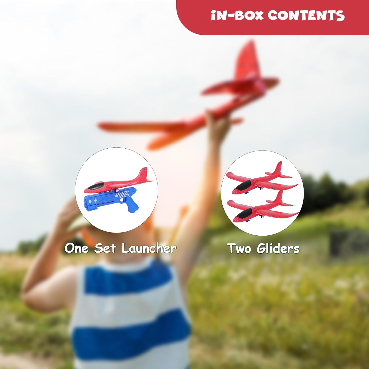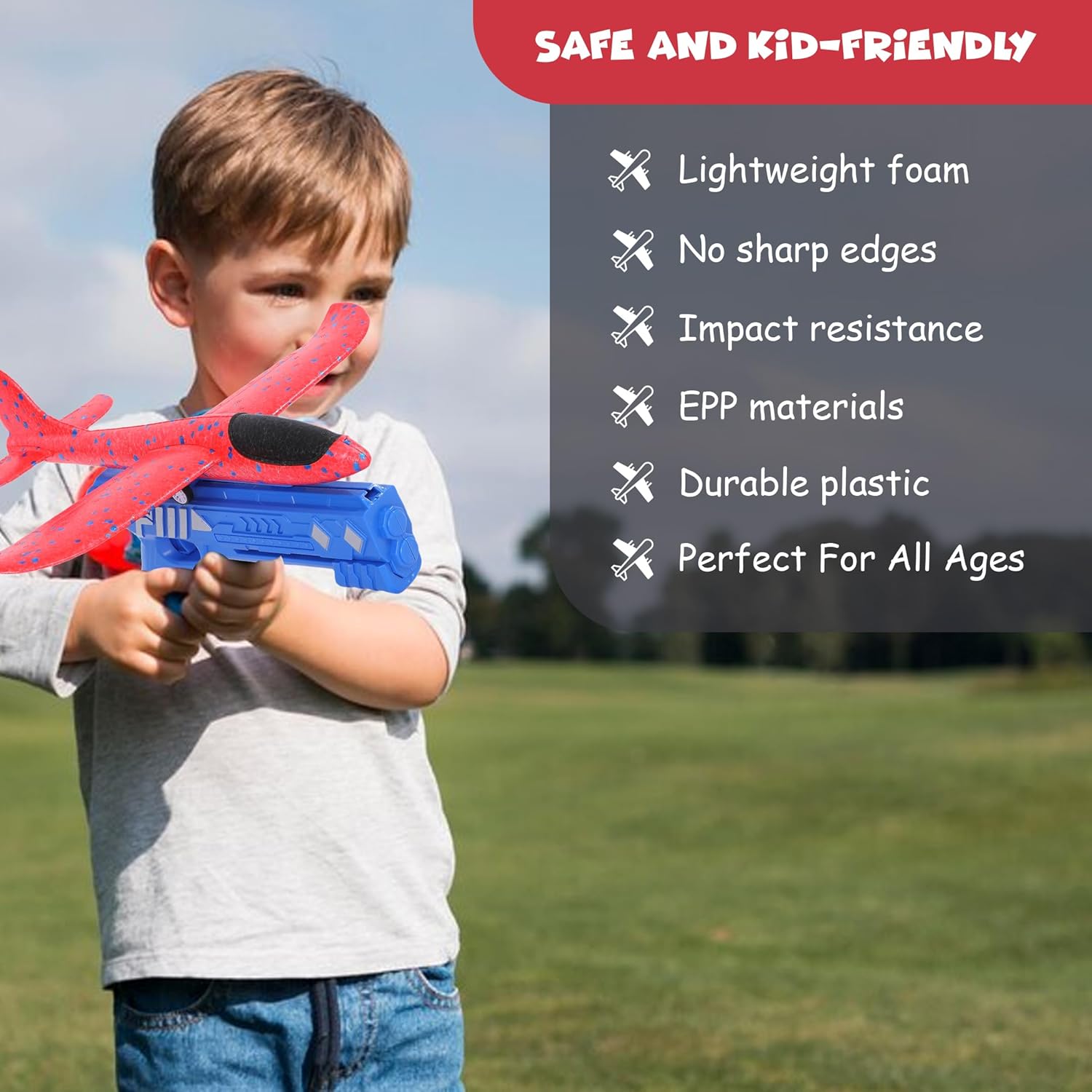 FUNFY Flugzeug-Startpistole aus Schaumstoff für draußen | EPP-Polymer und Kunststoff | Blau und Rot | 2 Segelflugzeuge für aufregende Abenteuer in der Luft | Bietet Kindern stundenlange Unterhaltung