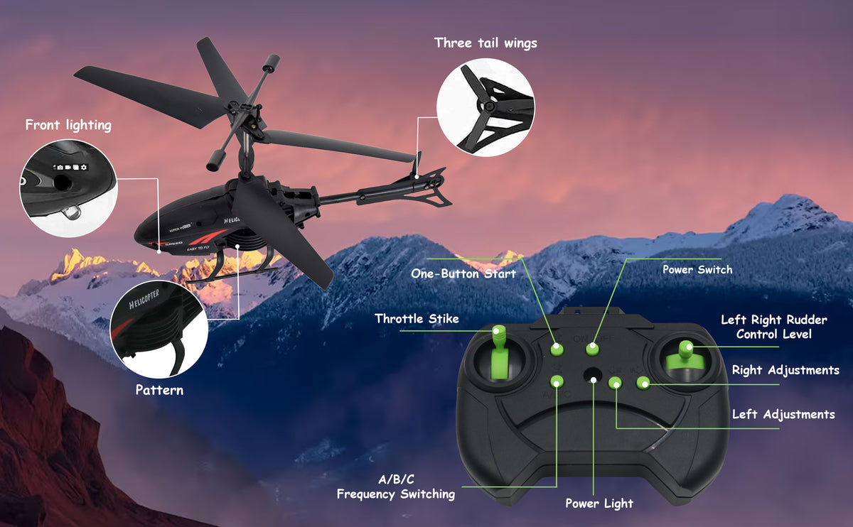 - Im Lieferumfang enthalten: 1 x Hubschrauber, 1 x Fernbedienung, Batterie