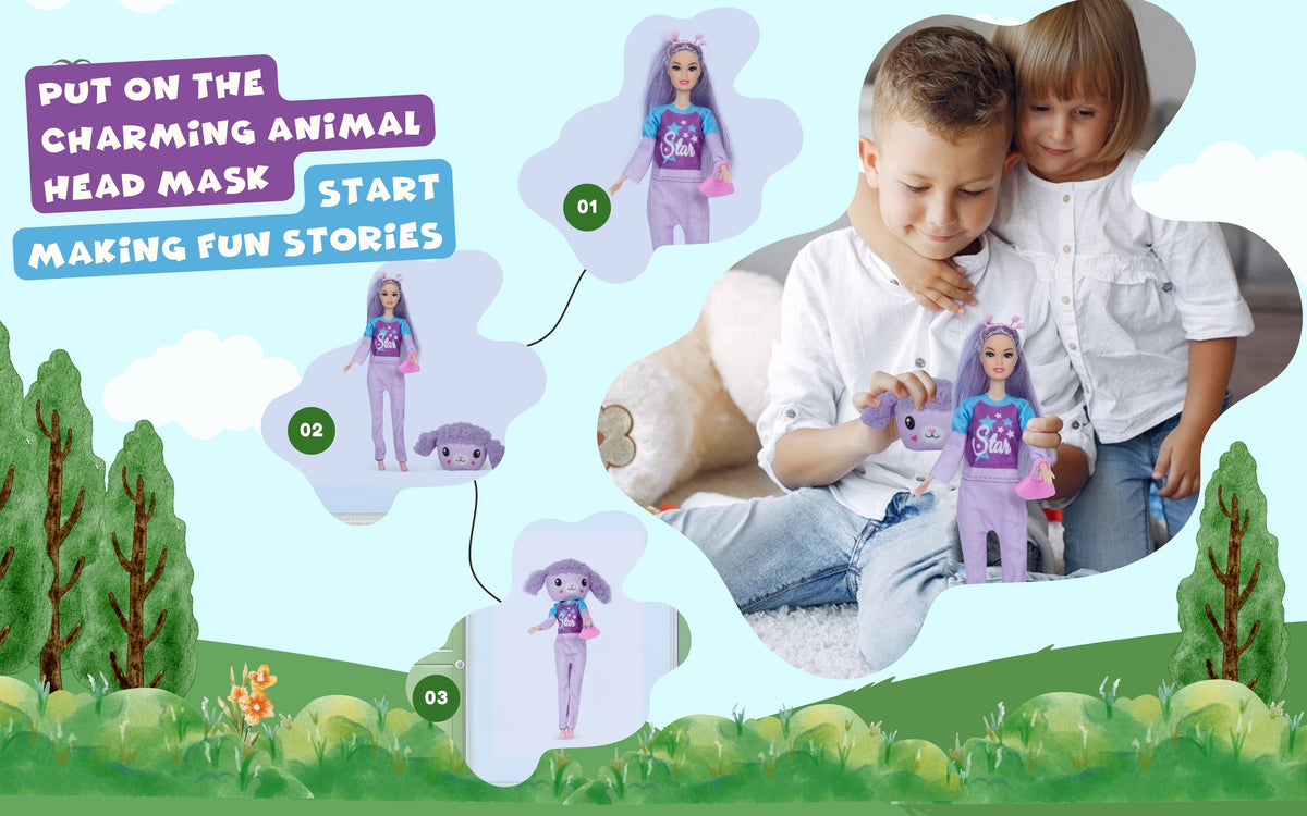- Komplett mit Maske: Die Funfy-Puppen werden mit einer Maske als Zubehör geliefert, sodass Kinder fantasievolle Geschichten erzählen und Rollenspiele spielen können.
