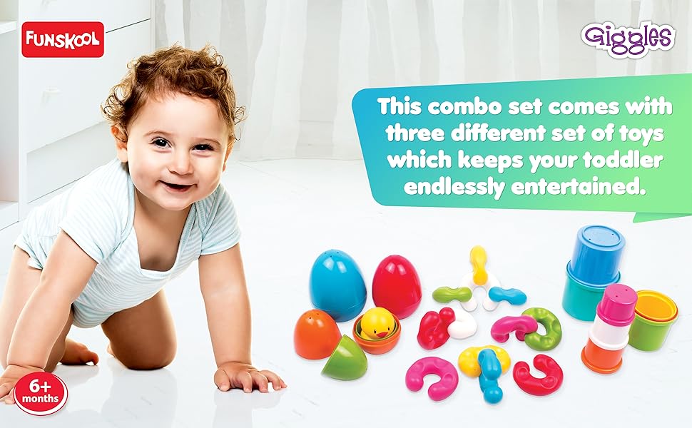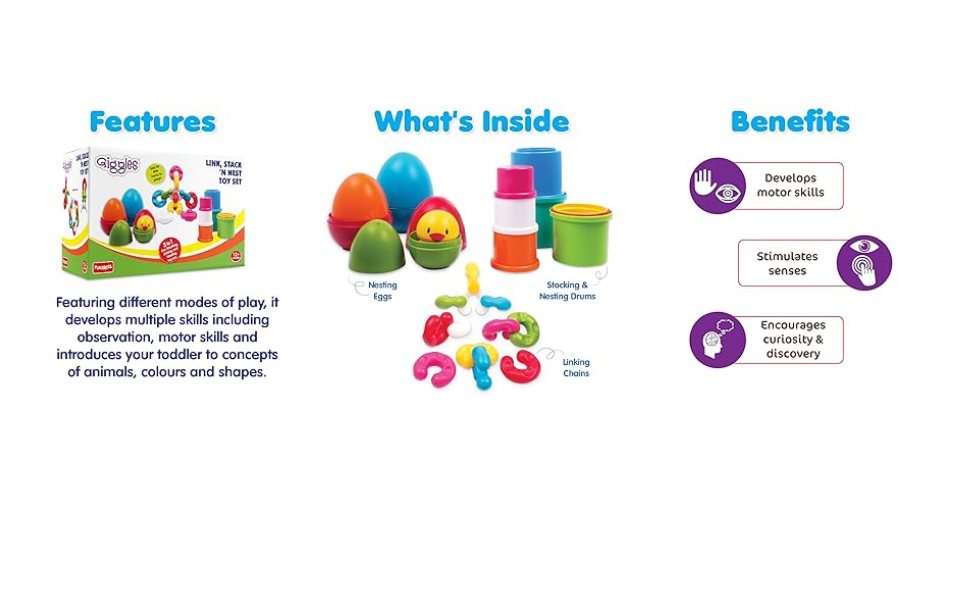Giggles Funskool Link Stack N Nest, stapelbare und ineinandersteckbare Spielzeugklötze für Kinder, fördert das Lernen und die Entwicklung, lustige Aktivität für Babys, Geschenkset für Kinder ab 6 Monaten