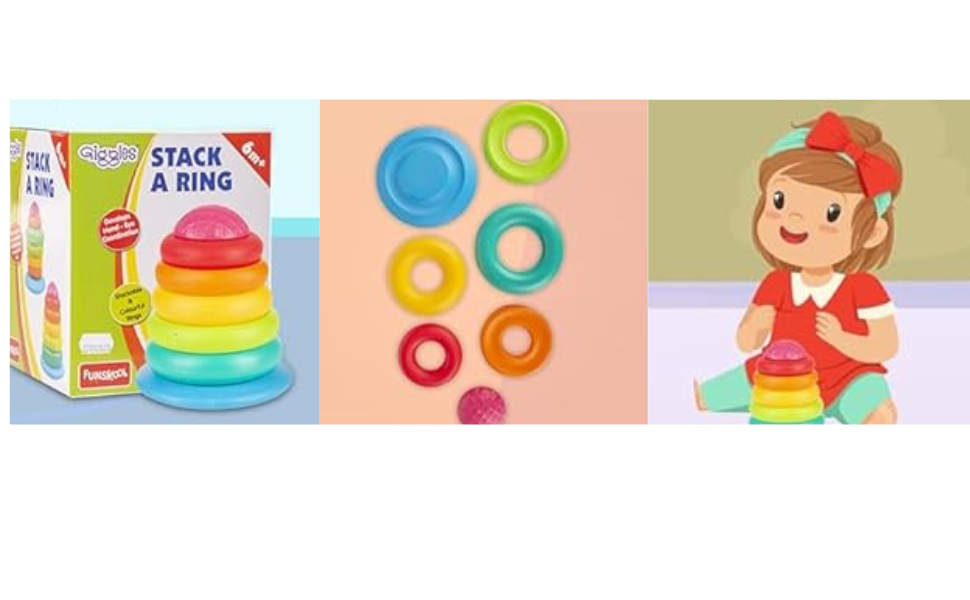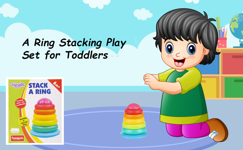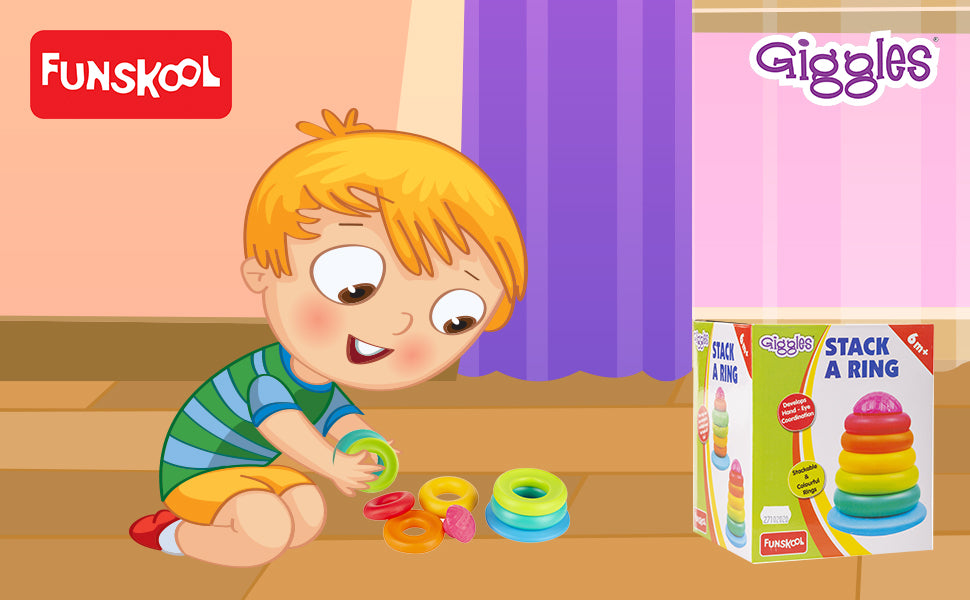 Giggles Funskool Stack A Ring, mehrfarbiges Stapelspielzeug mit 5 bunten Ringen, hilft beim Greifen, Schütteln und Stapeln, ab 12 Monaten, Spielzeug für Kleinkinder und Vorschulkinder