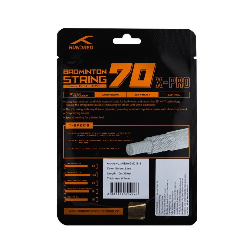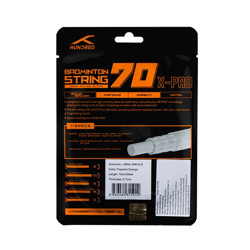 - Bringen Sie mit den Hundred 70 x Pro-Saiten professionelle Power und Kontrolle in Ihr Spiel. Diese Saiten bestehen aus hochleistungsfähiger Kunstdarmsaite und bieten eine optimierte Mischung aus Power, Gefühl und Spannungserhalt.
