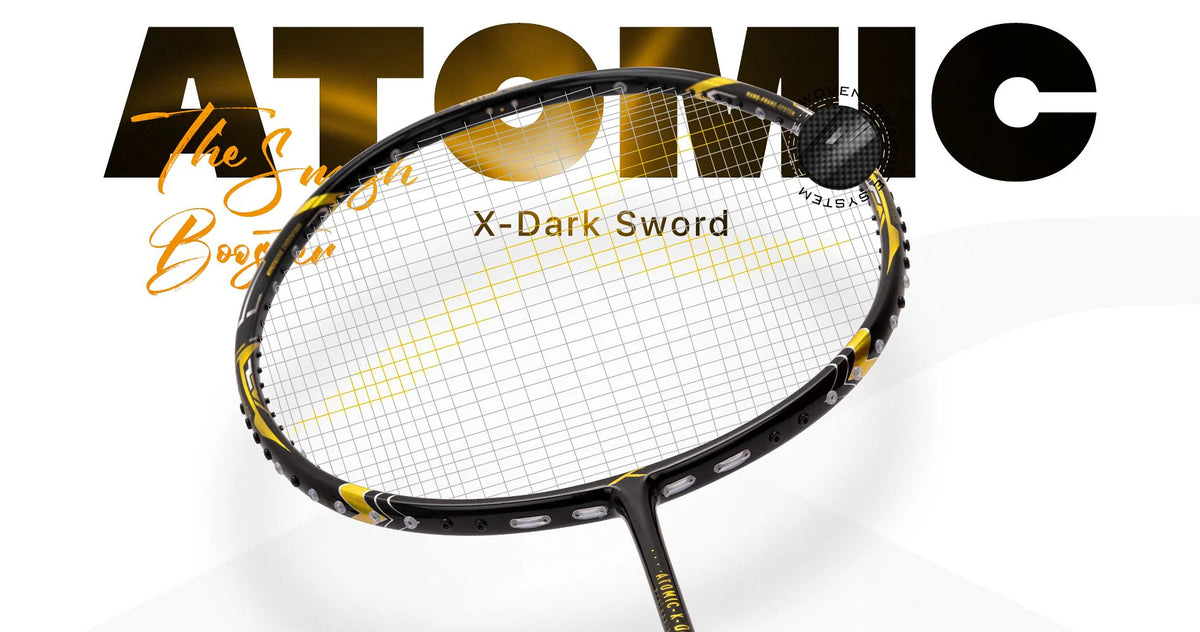 HUNDRED Atomic-X Dark Sword Kohlefaser unbesaiteter Badmintonschläger mit vollständiger Schlägerhülle für fortgeschrittene Spieler