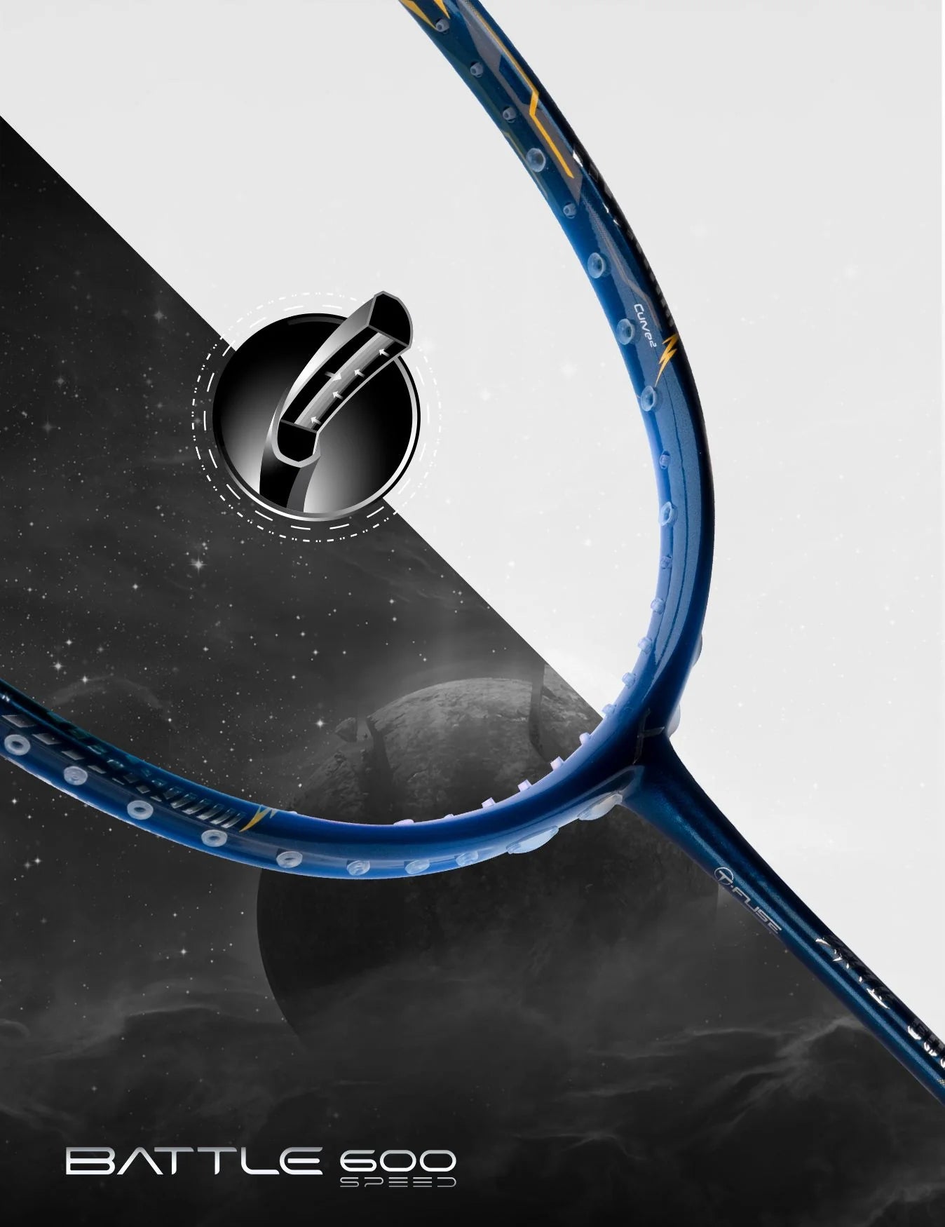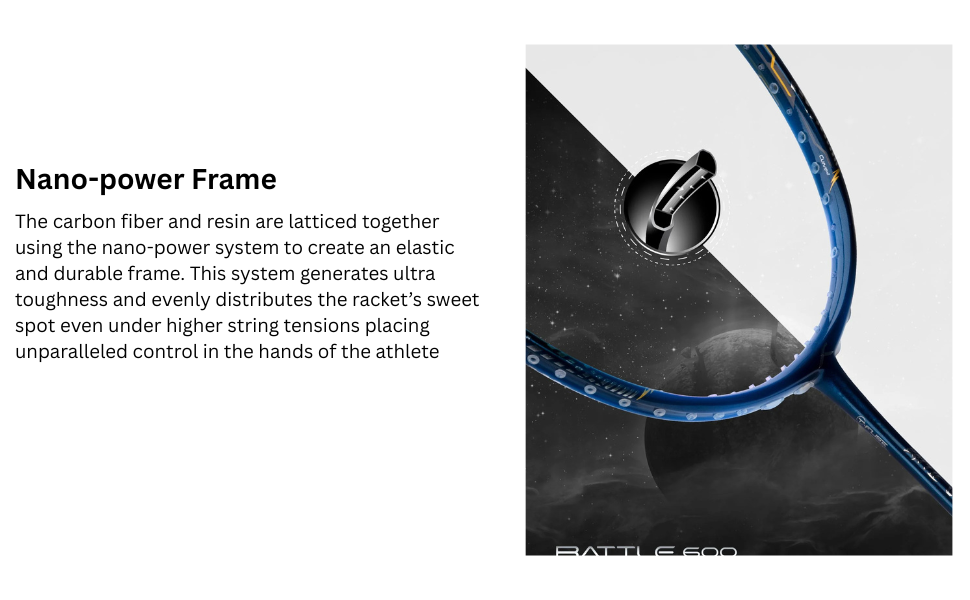 - Der Battle 600 ist der ultimative Angriffsschläger für Badminton-Enthusiasten. Ausgestattet mit der fortschrittlichen T Fuse Nano Tube-Technologie verbindet dieser Schläger Schaft und Rahmen nahtlos miteinander und verbessert so die Kraftübertragung und Stabilität bei jedem Smash. Sein extrem strapazierfähiger CNTRL FOAM-Rahmen sorgt für Elastizität, während der ultraschlanke 6,5 mm VaporShaft mit unvergleichlicher Geschwindigkeit durch die Luft schneidet. In Verbindung mit einer hohen Spannkraft von 32-34 lbs verstärkt der Battle 600 Kraft und Präzision.