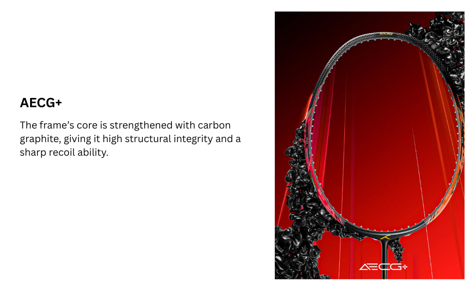 Die Technologie zur Stabilisierung des Schlägers verhindert Verdrehungen, sodass sich jeder Schlag zentriert anfühlt. Pure Geschwindigkeit, Schlag für Schlag.“ - „AECG+