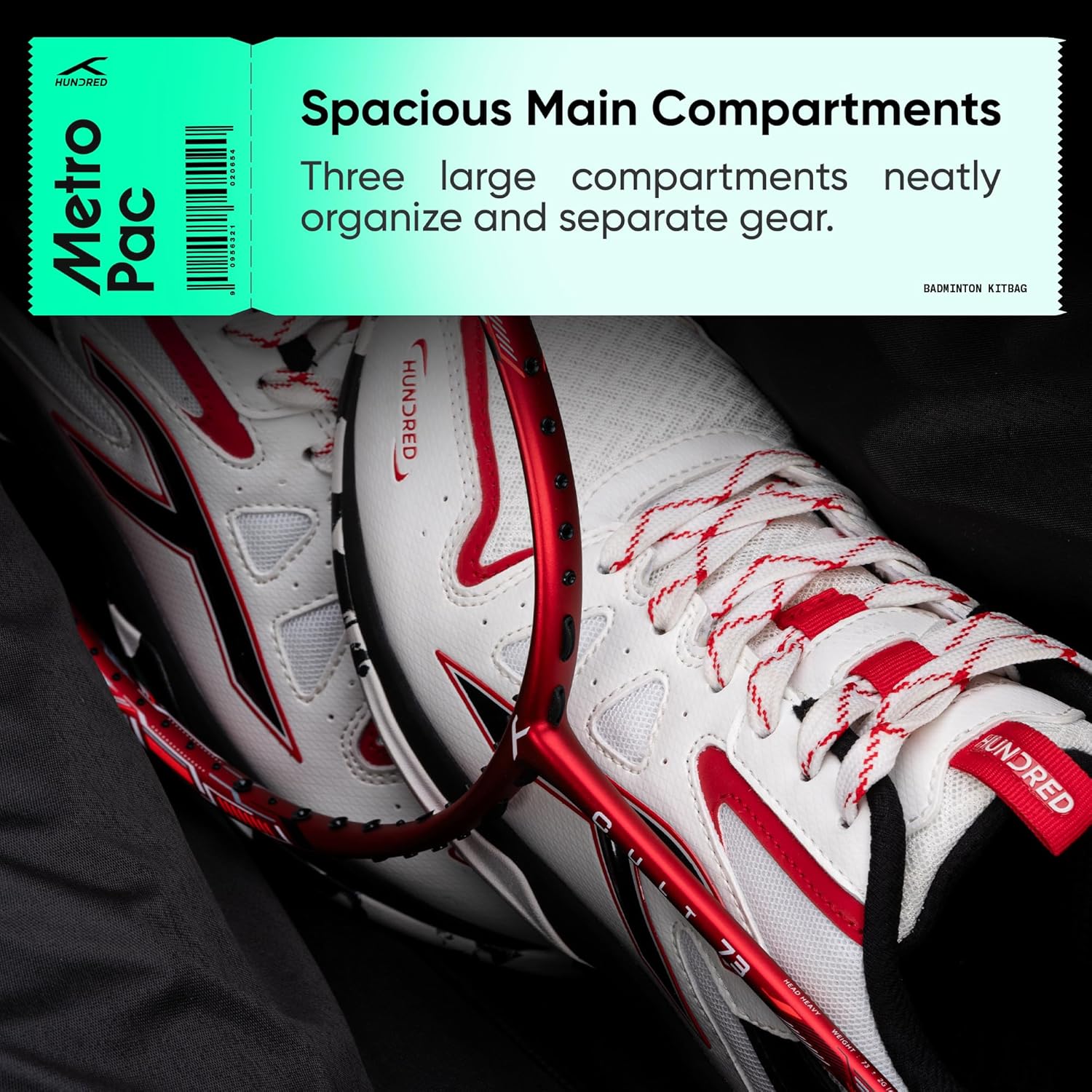 HUNDRED Metro Pack Badminton-Tasche, Unisex, 3 geräumige Fächer, doppelter Reißverschluss, Größe L