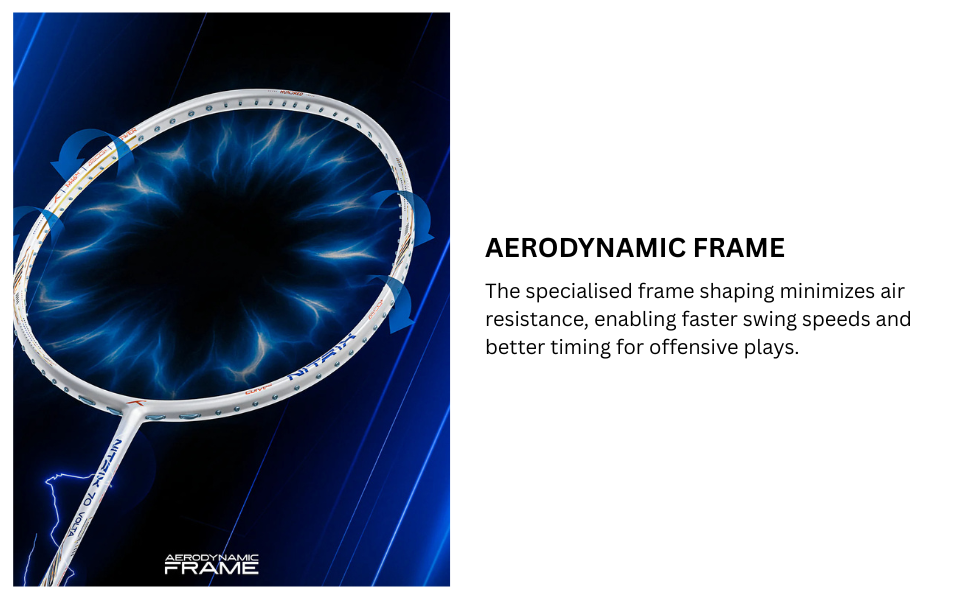 Die spezielle Rahmenform minimiert den Luftwiderstand und ermöglicht so höhere Schwunggeschwindigkeiten und ein besseres Timing für offensive Spielzüge.„“