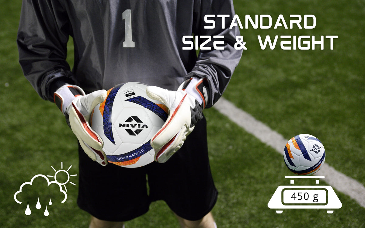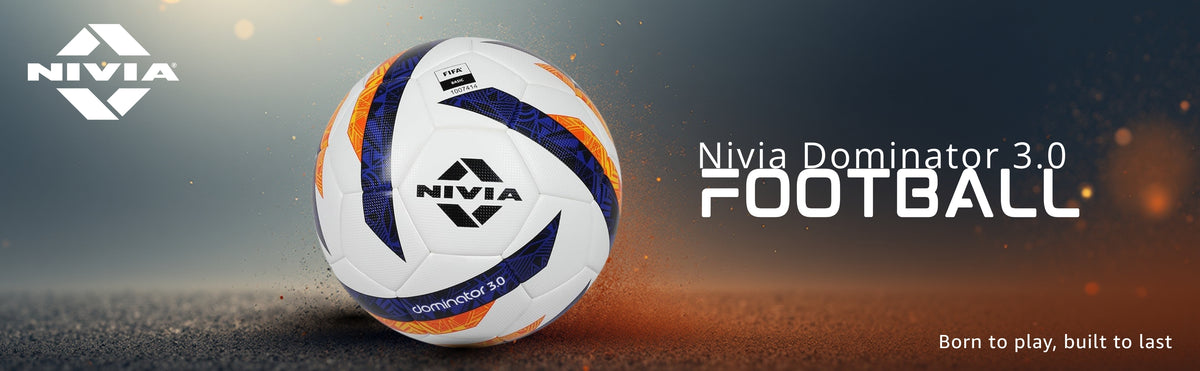 Nivia Dominator 3.0 Fußball, Spielball, 32 Felder, strapazierfähiges & weiches PU-Leder, Butyl-Gewebe verletzte Blase, FIFA Basic, zum Spielen auf natürlichem und künstlichem Rasen (Multicolor, Größe - 5)