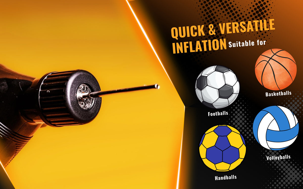 - Schnelles und einfaches Aufpumpen: Die Pumpe bietet eine schnelle und mühelose Methode zum Aufpumpen einer Vielzahl von Sportbällen, einschließlich Fußbällen, Basketbällen, Volleybällen und Handbällen.