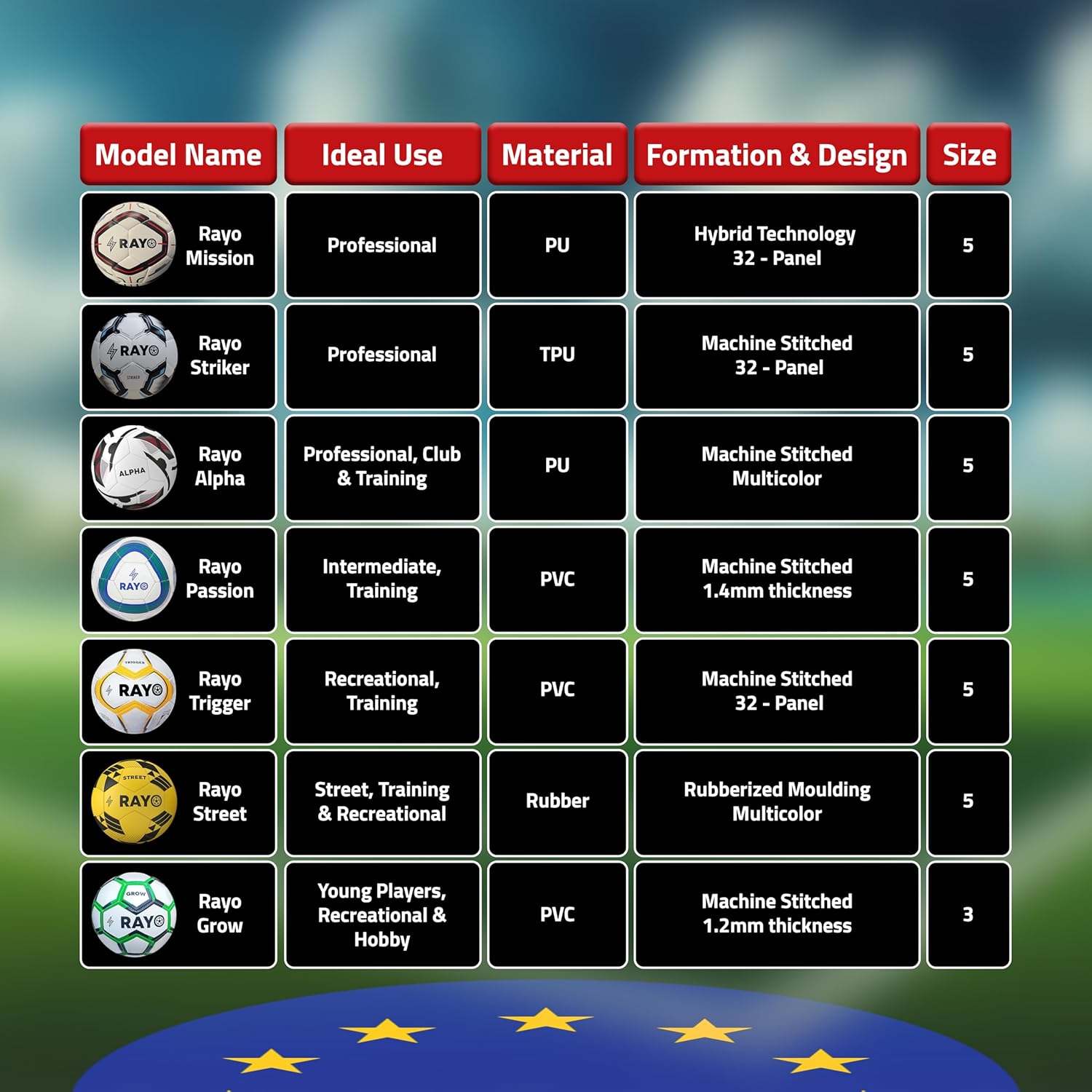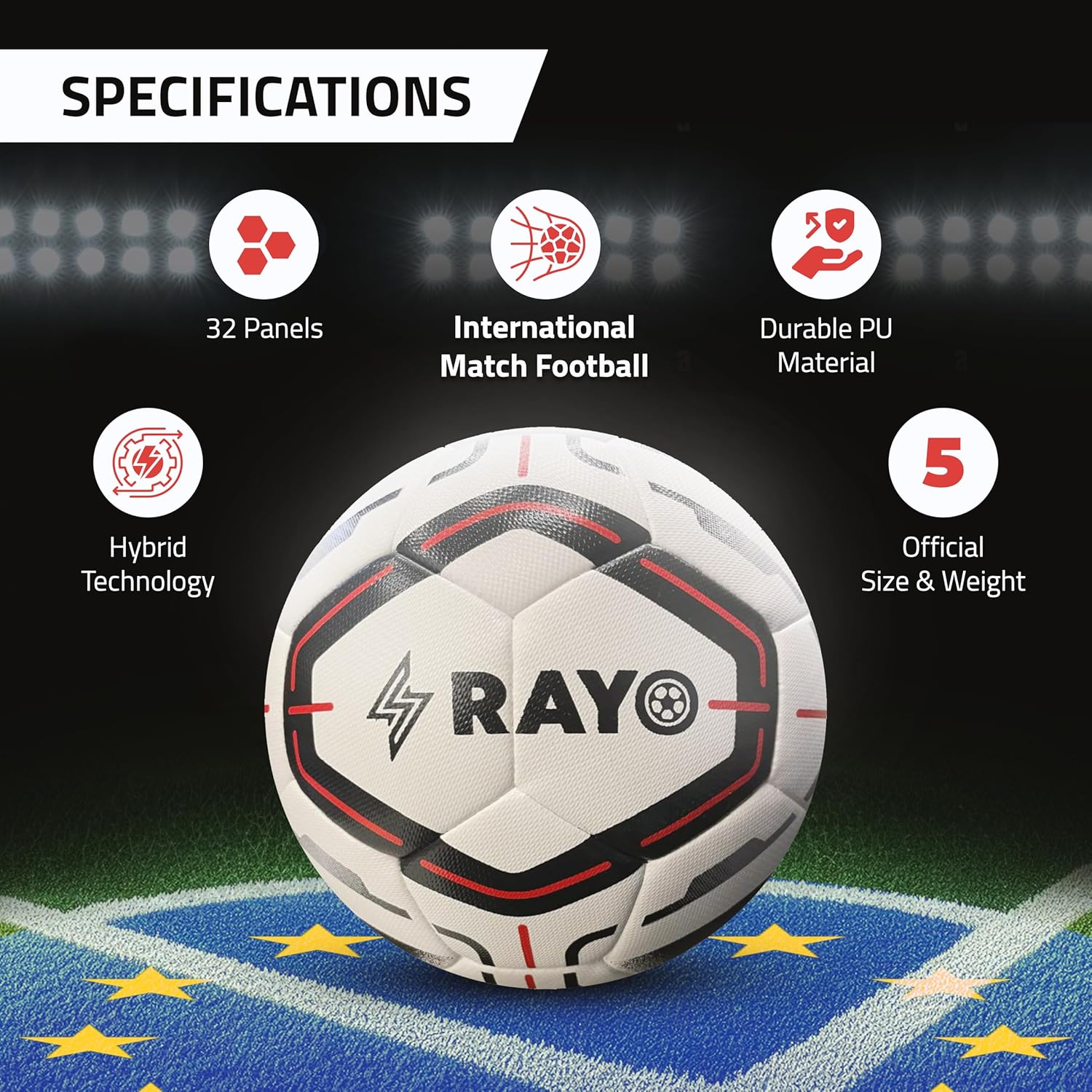 Rayo Mission Hybrid 32 Panel Match Football der Größe 5 | FIFA Approved / Stamped | Material : PU | 1 MM Thickness Football für professionelle Spiele