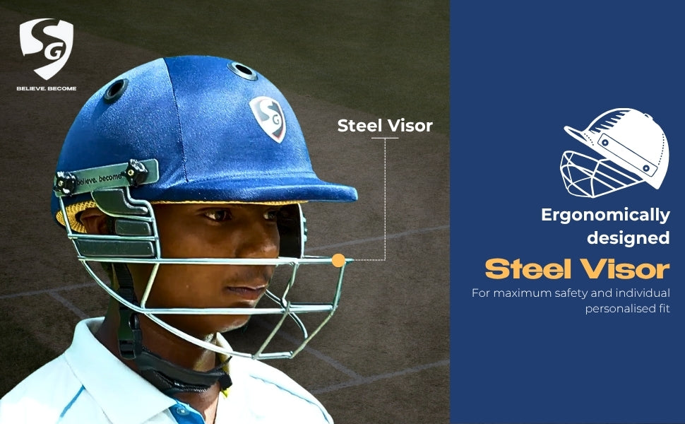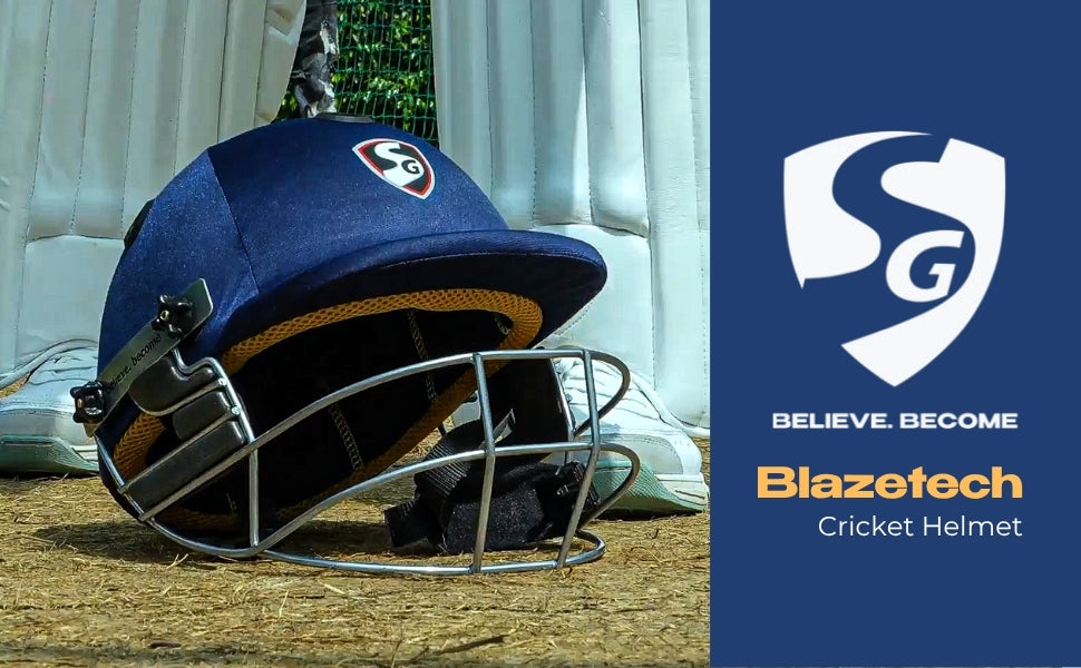 SG BLAZETECH Cricket-Helm | Marineblau | Für Männer & Jungen | Verstellbares Stahlgitter | Rückenstützriemen | Leichtgewicht ca. 450g