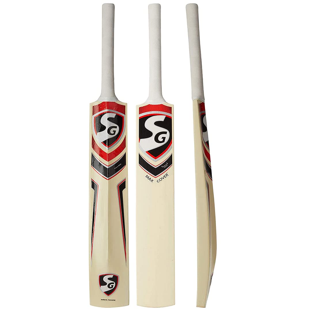 SG Max Cover Cricketschläger für Herren und Jungen (Beige) | Material: Kashmir Willow | Leichtgewicht | Free Cover | Spielfertig | Für Fortgeschrittene Spieler | Ideal für Lederball