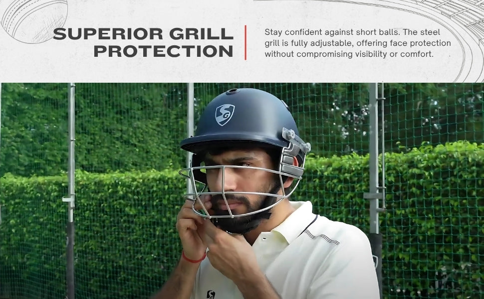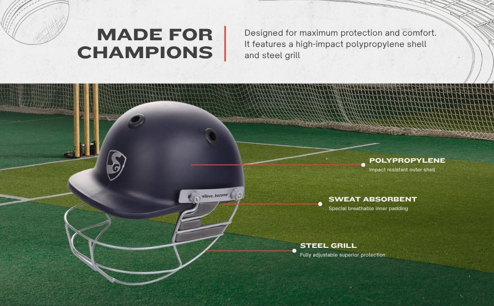 SG OPTIPRO Cricket-Helm | Marineblau | Für Männer & Jungen | Verstellbares Stahlgitter | Atmungsaktive Innenpolsterung | Leichtgewicht