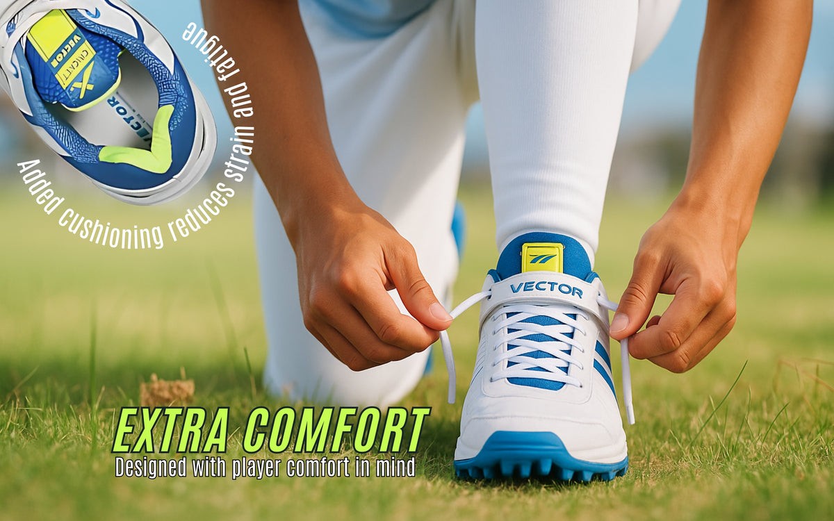 - Überragender Komfort und Halt: Vector X CKT-200 Cricket-Schuhe verfügen über einen gepolsterten Knöchel Kragen und Fußbett, bietet außergewöhnlichen Komfort und Unterstützung für Männer und Jungen, die Spitzenleistung während intensiver Spiele zu gewährleisten.