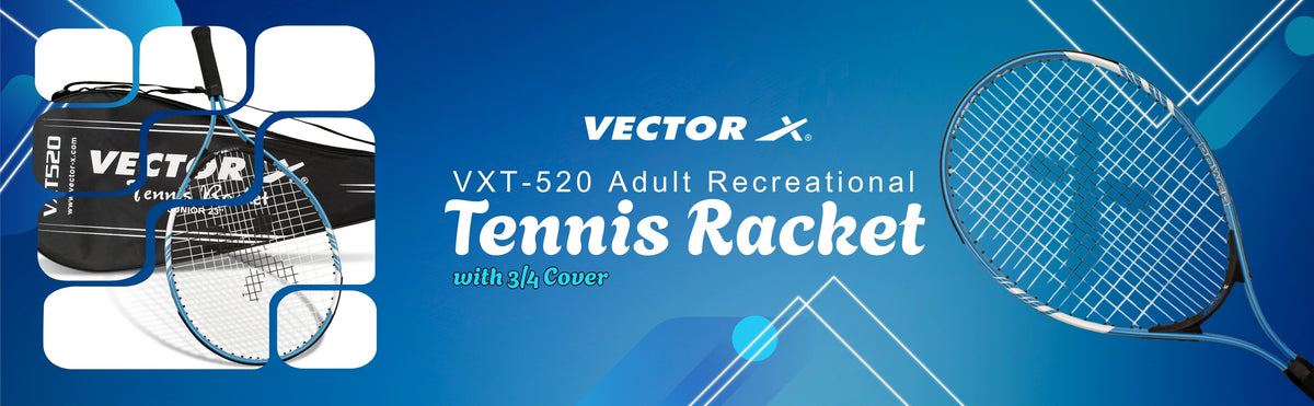 Vector X VXT-520 Strung Tennisschläger | Größe: 25 Zoll | Material: Aluminium | mit 3/4 Hülle | Leichtgewicht | Starke Schlagfestigkeit | Stoßdämpfende Wirkung | Spielstärke: Fortgeschrittene
