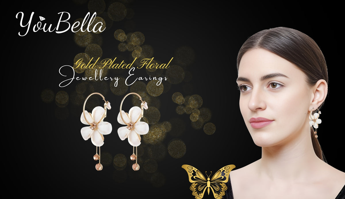 YouBella Floral Drop Earrings | Gold plattiert | Material: Messing | Modischer Kunstschmuck | Für Frauen & Mädchen | Perfekt für besondere Anlässe und Bürokleidung | Für Geschenke & Hochzeiten