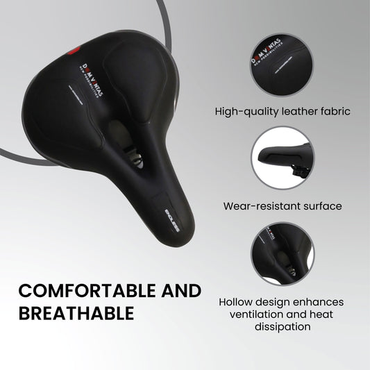 • Endless EL1047 Breiter Fahrradsitz mit rotem reflektierendem Sicherheitsstreifen | Schwarz | Material: PU | Universeller Memory Foam Sitz mit atmungsaktivem, stoßdämpfendem und wasserdichtem Fahrradsitz für alle Arten von Fahrrädern